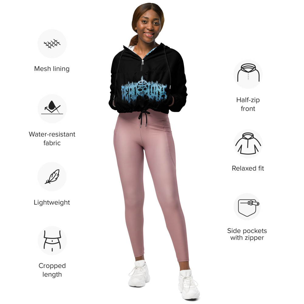 Hike in style without the rain getting in the way—this cropped windbreaker is lightweight, waterproof, and suitable for every kind of adventure. Features include side-slit pockets, breathable mesh lining, and adjustable drawcords on the hood and waist to support all your stylish outdoor looks.